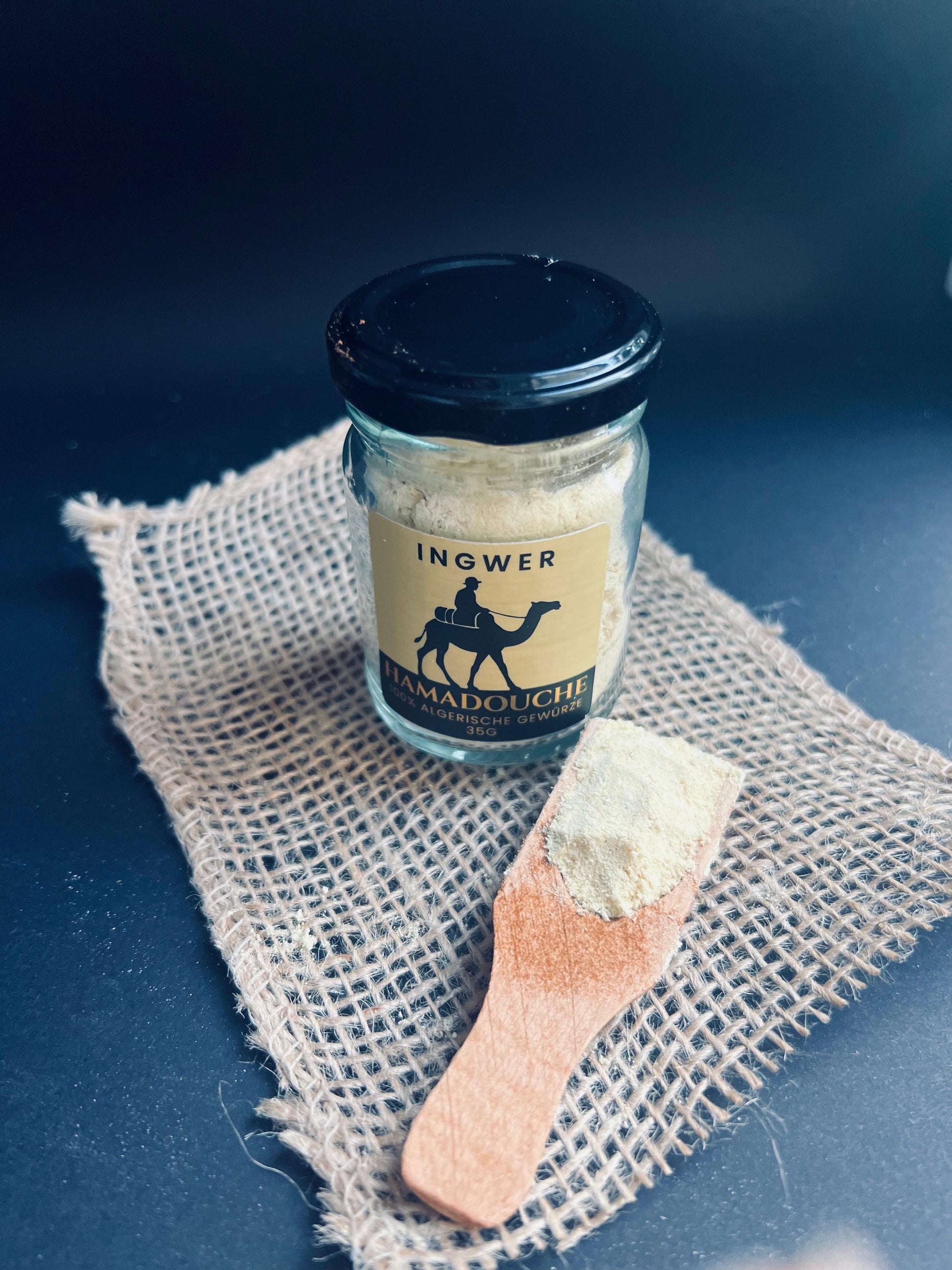 Unser gemahlener Ingwer aus Algerien besticht durch sein frisch-würziges, leicht scharfes Aroma und seine hohe Qualität. Das naturreine Gewürz bringt eine angenehme Wärme und Frische in zahlreiche Gerichte – süß oder herzhaft.